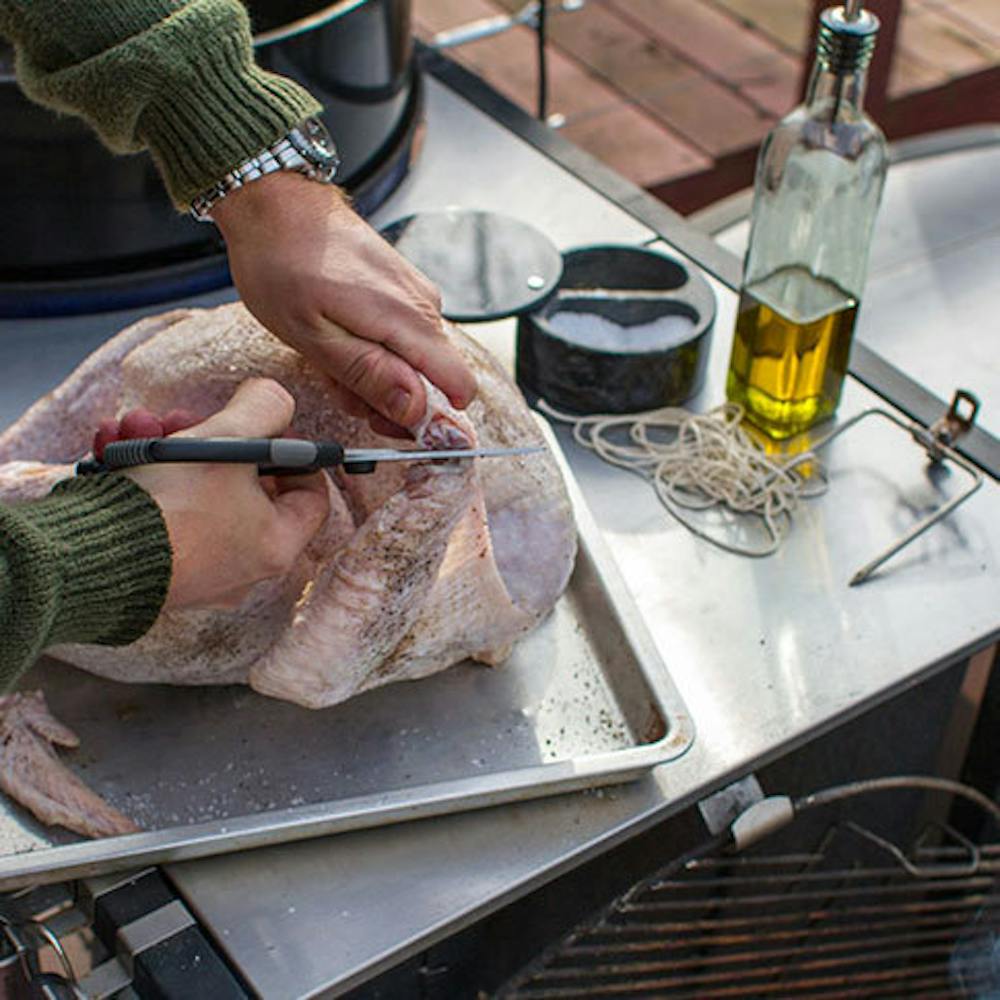 Verwijder de puntjes van de vleugels met een wildschaar. Vleugelpuntjes hebben vrijwel geen vlees aan zich en zullen gaan verbranden, het is dus niet erg deze te verwijderen.