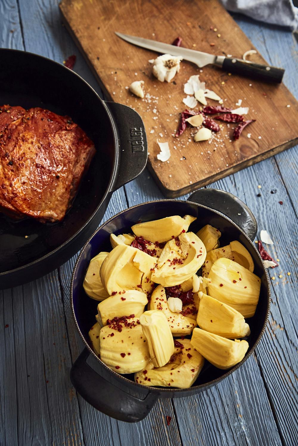 Jackfrukt har vært en viktig matlagingskomponent i tropiske klima i generasjoner. Den har størrelsen til en liten melon, og har et grønt, nuppete skall som kan minne deg om en ananas. Den myke, fibrete teksturen gjør at den passer ypperlig til å absorbere sauser og er en perfekt komponent i karriretter, gryteretter, salater og salsaer.
