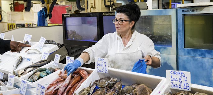 Londons Billingsgate fiskemarked er én av verdens største fiskehandlere. Et perfekt sted å lære hvordan man griller de beste fiskerettene!