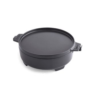Det allsidige designet gir uendelige muligheter på grillen. Gryten av støpejern har en kapasitet på 6,8 l, noe som sikrer en ensartet varmefordelig og -isolering slik at du kan lage møre steker eller smakfulle supper og gryteretter. Lokket har to funksjoner og kan også brukes som en flat stekepanne til bacon, kyllingbryst eller grønnsaker. Overflaten har en porselensemalje som gjør det enkelt å rengjøre gryten, og de to delene kan stables for å spare plass under oppbevaringen.