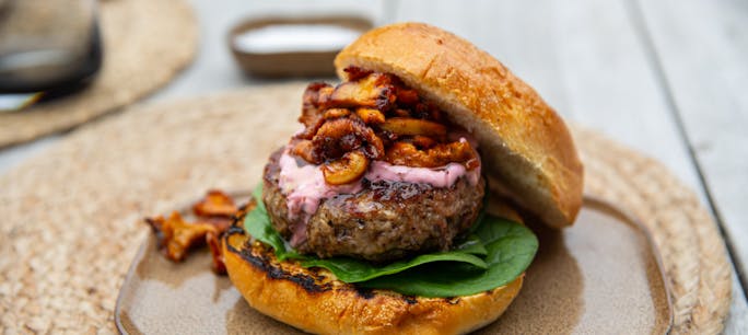 Hemgjorda, saftiga hamburgare är ett perfekt val till den spontana grillkvällen. Att slänga ihop delikata hamburgare är varken svårt eller tidskrävande, och rätten går dessutom att variera i all oändlighet beroende på tycke och smak. Den klassiske hamburgeren har vært på tapeten – eller vi burde kanskje si menyen – i hundrevis av år. Selv den dag i dag er det lite som kan måle seg med en grillet hamburger med godt tilbehør. En klassisk burger av karbonadedeig er faktisk utrolig enkel å tilberede på grillen, og passer perfekt både til middagsselskap og spontane grillkvelder med familien. Her har vi brukt enkle krydder til å blande den perfekte hamburgerdeigen. Deretter har vi tilsatt cheddarost, bacon, majones og sprø grønnsaker til det ferdige resultatet. Ved hjelp av Webers Gourmet BBQ System-grillrist kan du enkelt grille hamburgerne mens du steker bacon, brød og rødløk til perfeksjon.