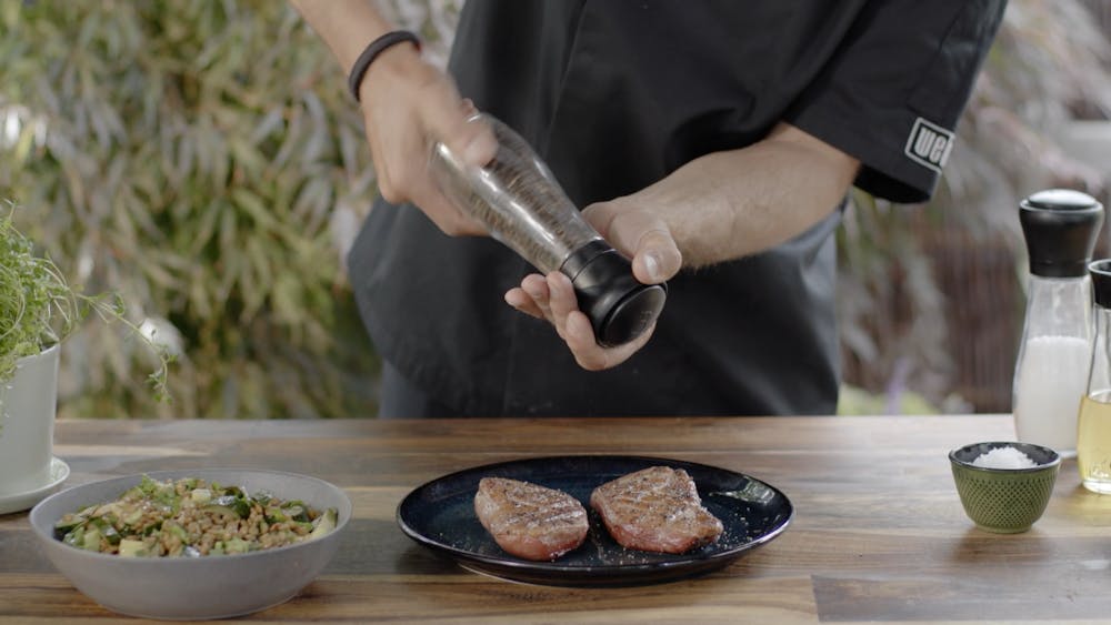 Går det att få till det perfekta ankbröstet på grillen? Javisst, och det är inte alls svårt. Här tillagas ankbrösten på en träpelletsgrill från Webers SmokeFire-serie. Köttet får en alldeles speciell fin röksmak då. När du har fyllt på grillens magasin med träpellets tänder du grillen och stänger locket. Nu har du tid att förbereda köttet och tillbehören medan grillen blir varm. Apelsinsås är den traditionella såsen att servera till ankbröst. Vi har dock valt att istället bjuda på en god sallad med gröna linser, avokado, grillad gurka, koriander och lime till det grillade ankbröstet. Syran från limen ger salladen en fräsch smak som passar utmärkt till ankbröst. Smaklig måltid!