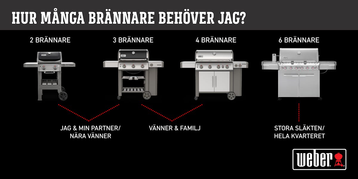 Vi på Weber ser grillen som en långsiktig investering. Det är en produkt som du ska leva och utvecklas med under många år, och att hitta rätt grill får därför gärna ta lite tid - ja, sökandet efter den perfekta modellen kanske till och med kan ses som ett nöje i sig! När det kommer till gasolgrillar finns det några grundläggande saker att tänka på för att du ska hitta rätt grill för dig.