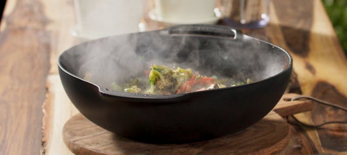 Med Webers wokset och medföljande ångkoksinsats kan du enkelt tillaga en perfekt grönsakswok direkt på grillen.