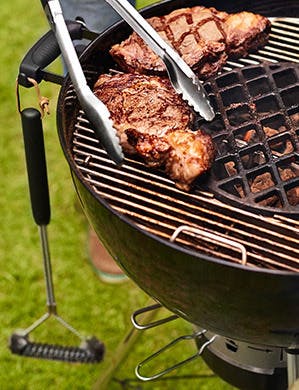 - Om matresterna sitter extra hårt kan du använda Weber Grillrens – Grillgaller