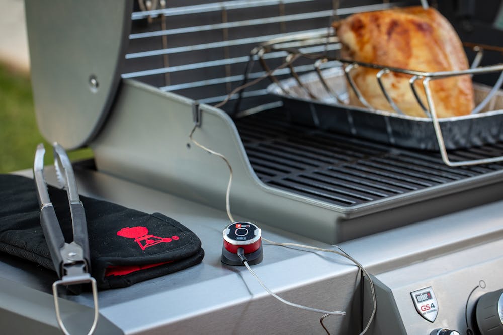 Turkeys take a long time to cook and with the colder weather that most of us have in November, you are going to want your grill to stay nice and warm, so that means no peeking! This is where the iGrill comes in! The iGrill is an app-connected thermometer that will send alerts right to your phone about the internal doneness of the turkey. Trust me, you are going to be thankful for this accessory!