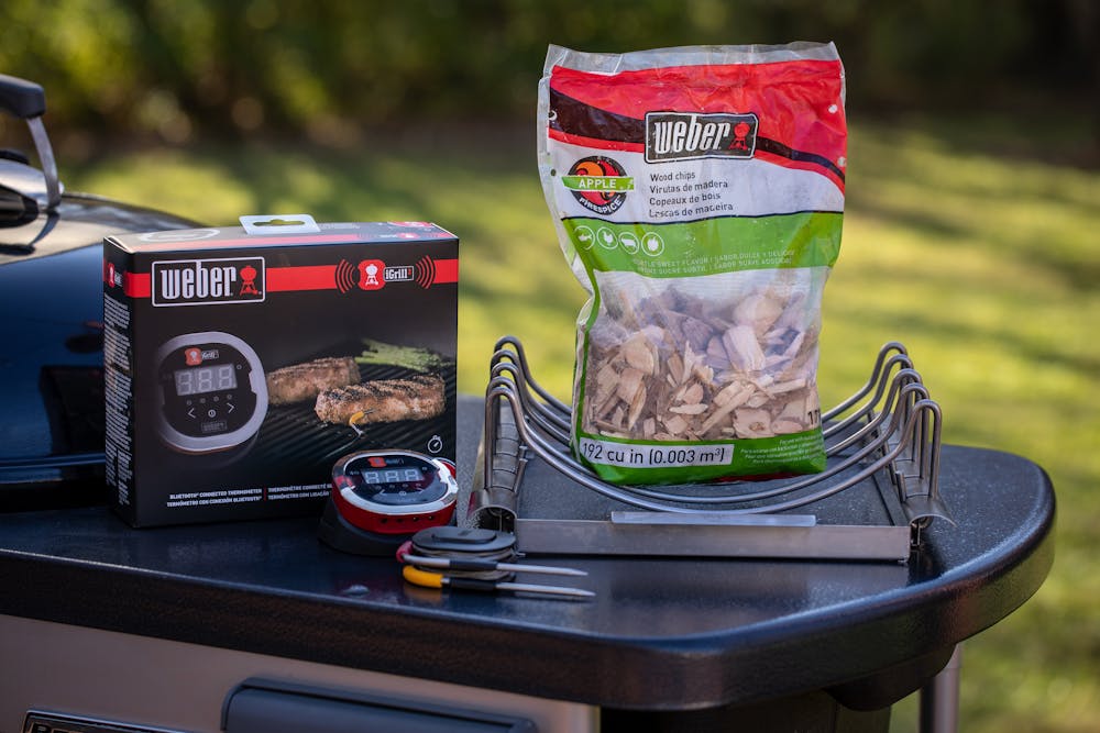 Add a smoker box to any gas grill to turn your grill into a smoker. Soak the chips for 30 minutes in water and then add them to the box. Get more tips on smoking on your gas grill here.