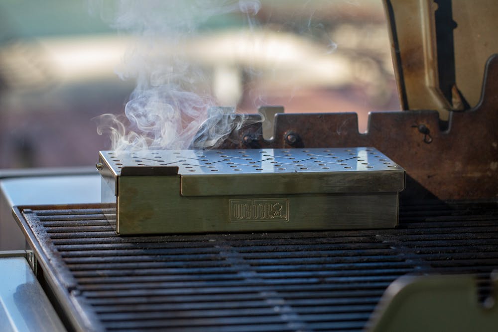 Add a Smoker Box to any gas grill to turn your grill into a smoker. Soak the chips for 30 minutes in water and then add them to the box. Get more tips on smoking on your gas grill here.