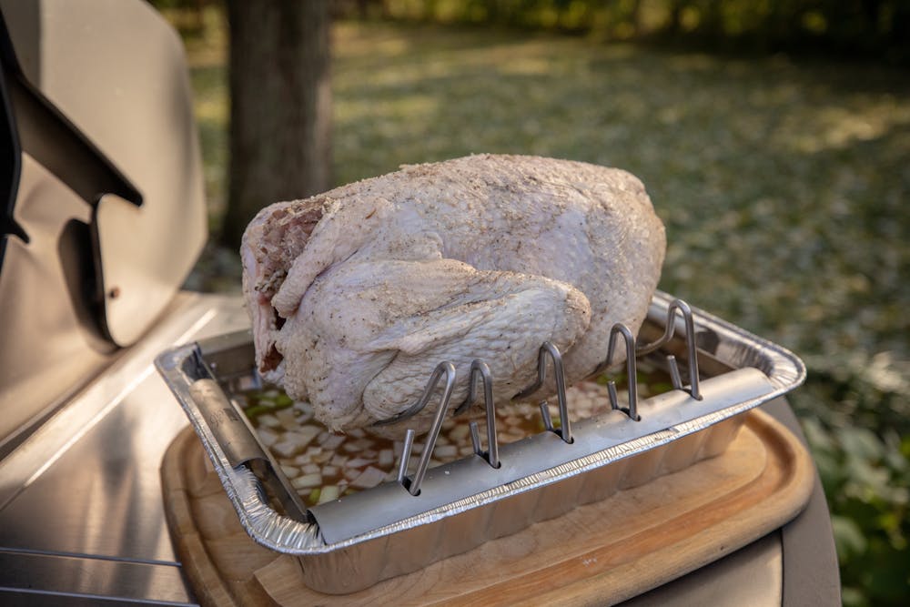 Turkeys take a long time to cook and with the colder weather that most of us have in November, you are going to want your grill to stay nice and warm, so that means no peeking! This is where the iGrill comes in! The iGrill is an app-connected thermometer that will send alerts right to your phone about the internal doneness of the turkey. Trust me, you are going to be thankful for this accessory!