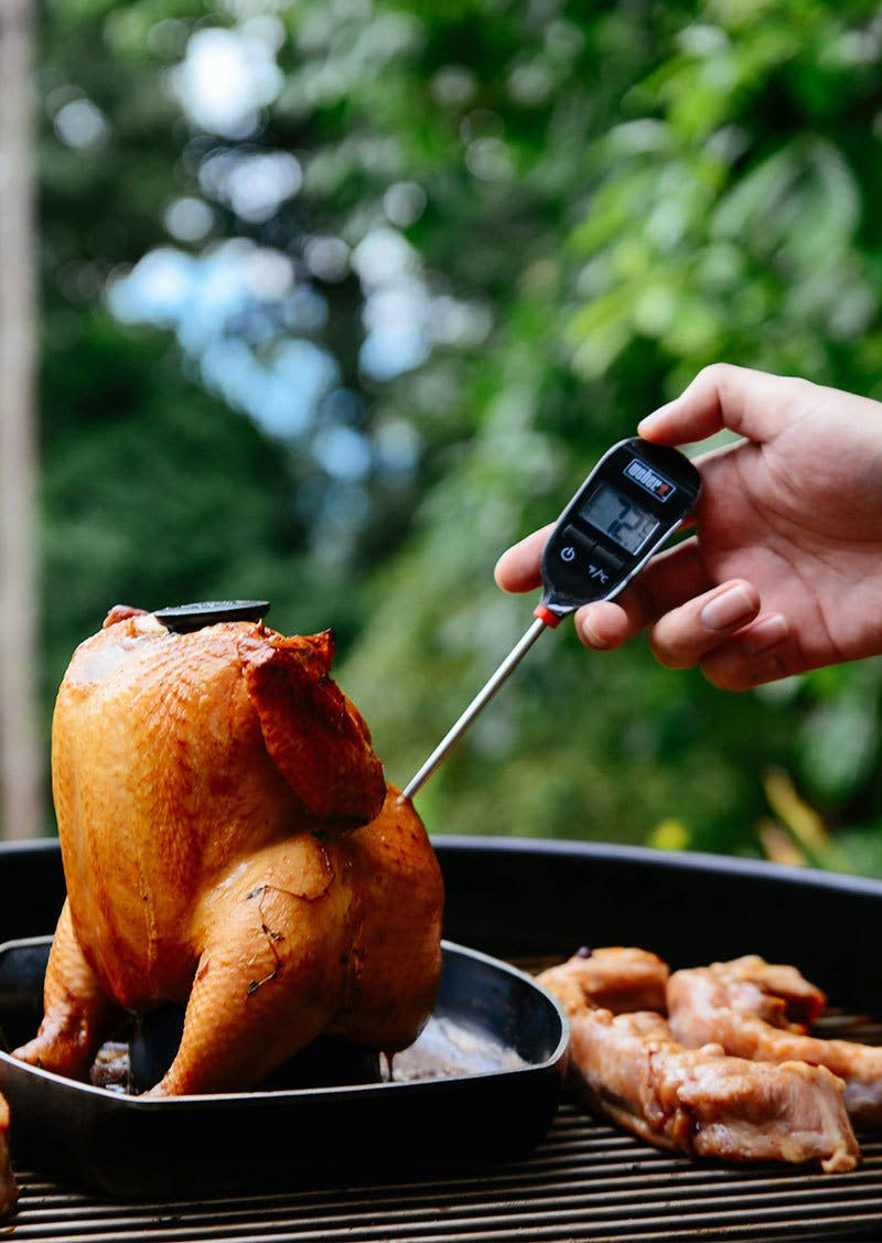 Those who’ve grilled with a Weber know that keeping the lid closed is essential to a good grill. Not only do you keep the delicious smokey flavor in, you maintain the heat to ensure an even cook. If you’re not sure whether your meat is done, achieve a more precise cook and check the internal temperature of your food with an instant-read thermometer without cutting into it your dish.