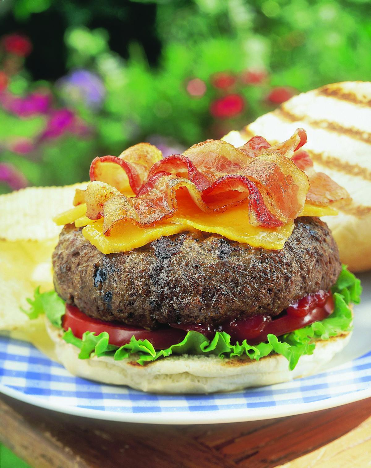 Classic Bacon Cheeseburger. A Father’s Day BBQ staple that brings all the red meat eaters ‘round the grill. This recipe walks you through the process of making this timeless burger into a cookout knockout. Easy prep, easy execution!