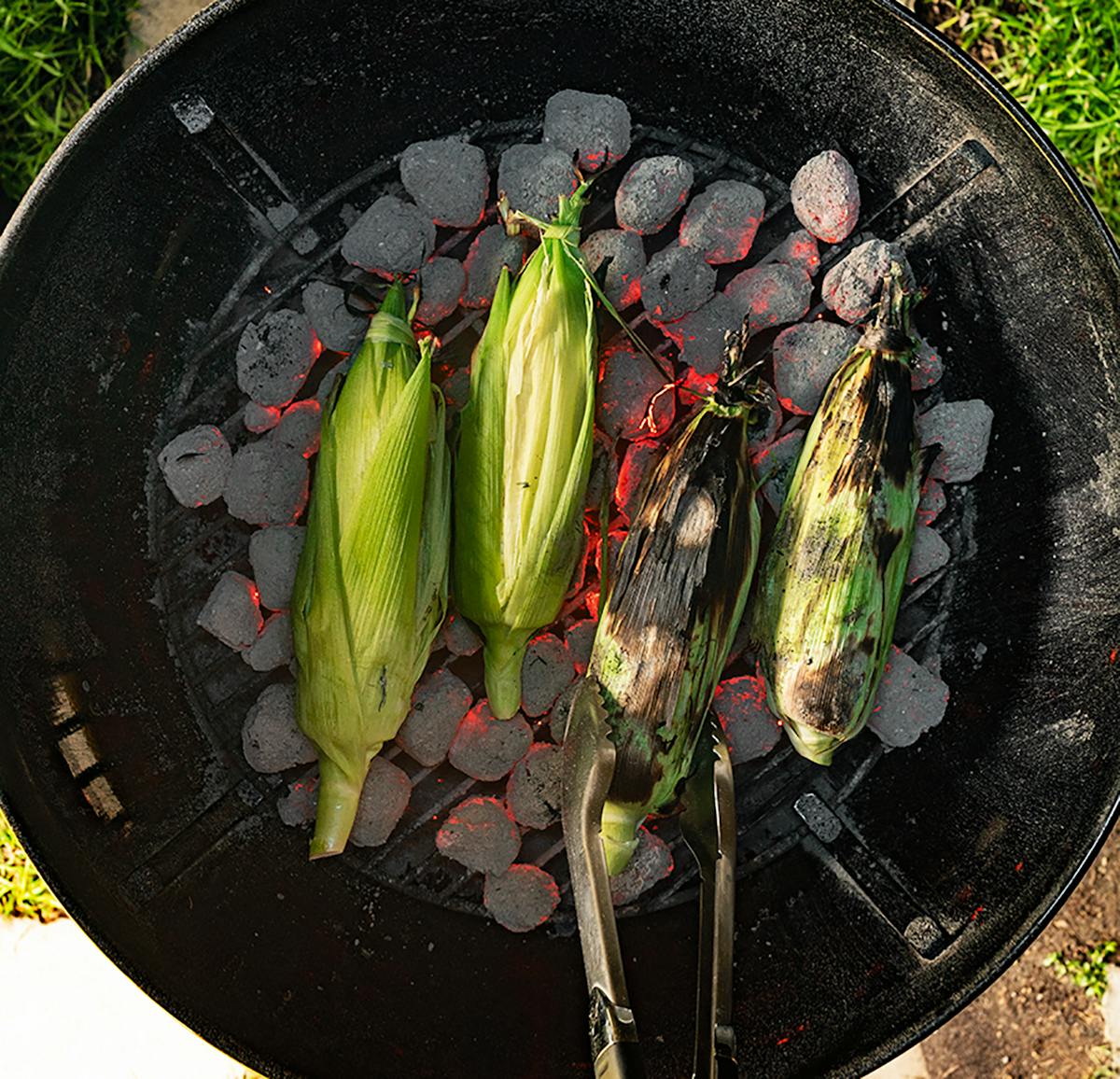 “Weber’s Ultimate Grilling” has other options for corn as well, including a method for cooking the ears, with husks still attached, on top of glowing charcoal.