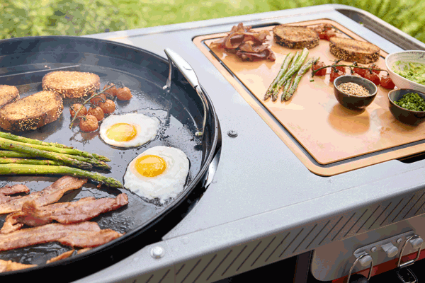 Customize the side table with the Condiment Caddy, Basin with Cutting Board Lid, or both side-by-side* *select models