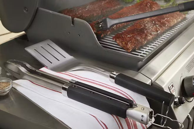 “The tongs especially are superb. The beveled edge on the spatula [makes it] easy to flip delicate items.” CSharp, 5-star review