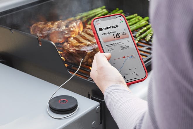 Use this clever little device with the Weber Connect® App to monitor the temperature of your probed food and the grill.