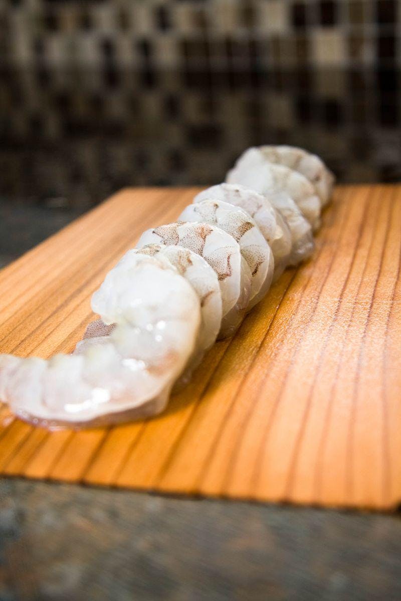 Raw shrimp on a skewer, ready for the grill - How to grill shrimp